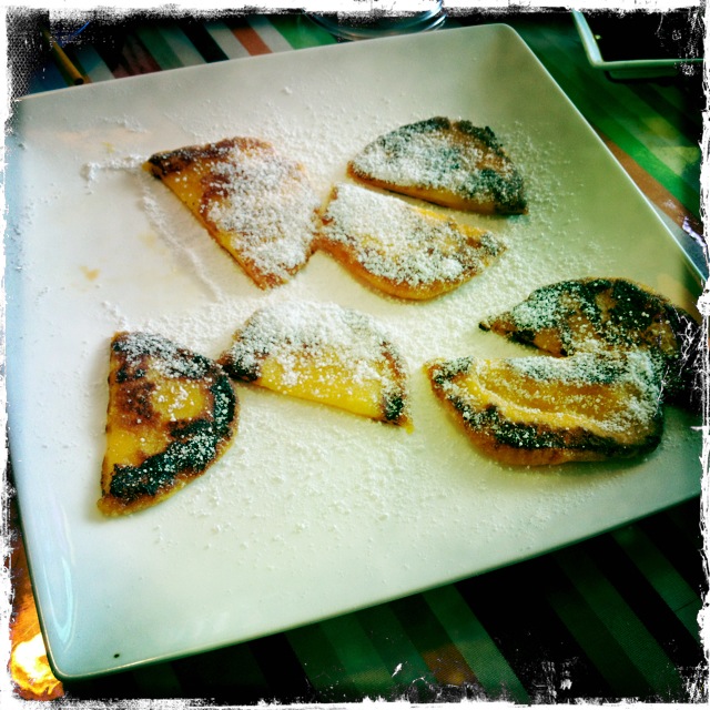 Makes: 12 small pancakes that we halved to share