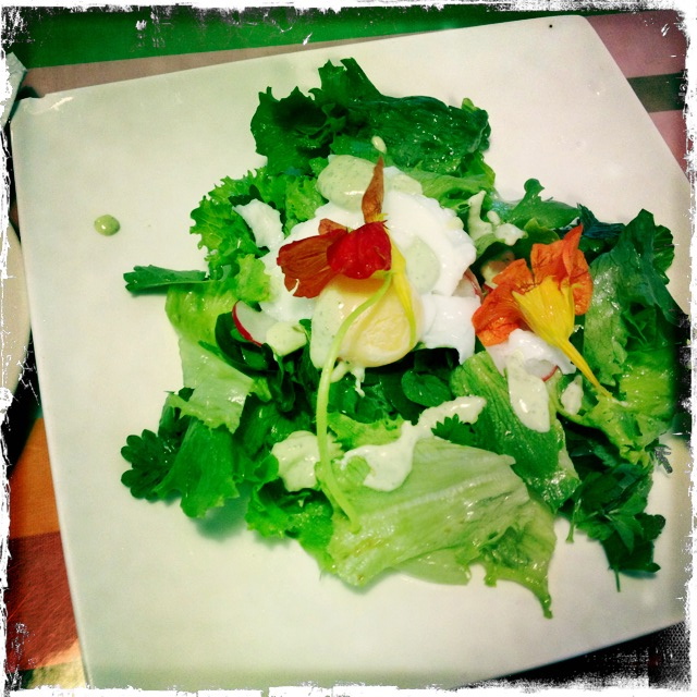 What a great name! Limehairy is also known as hoary basil or perennial basil and has a delicious basilly aroma and pretty flowers – and bees love it too! This salad has simple ingredients but they come together so wonderfully, with a spicy kick from the leaves, creaminess from the eggs and vibrant herby notes…