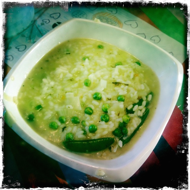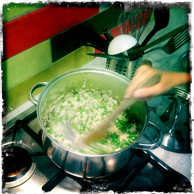 So, the first recipes up are new ones for us. We’ve been playing with ready-bought puff pastry in the Turnip tops & silverbeet, herb and ricotta tart – sure to be repeated again with different arrays of leafy veg – and then Risi e bisi, the Venetian take on a soupy risotto, using 3 types of peas… Also we’ve been explaining the importance of delicate leaf handling with our Green salad of baby rocket, spinach, lettuces and pea shoots and a beautiful apple cider vinegar and honey dressing… and we reinvigorated Yotam’s hummus – always a winner – with hand-rolled Rosemary and thyme grissini to mop it all up. And washed down with a curative cup of steaming Lemongrass and lemon balm (also known as Melissa Officinalis he he) tisane, or herbal tea… Wonderful!