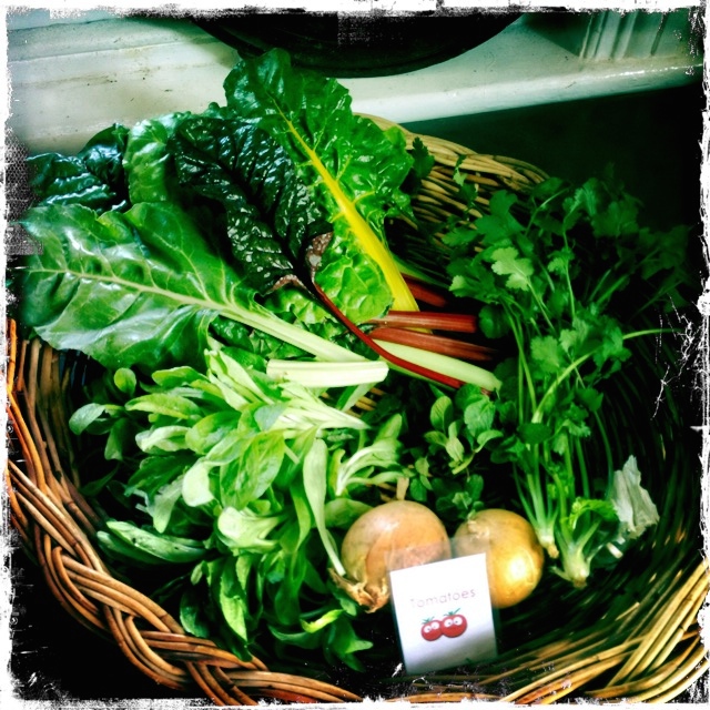 Fresh from the garden: parsley, coriander, mint, baby spinach, silverbeet, onion, garlic
