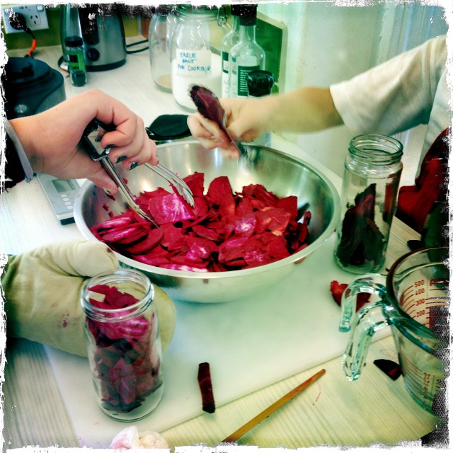 - Scrub a large beetroot under running water, then pop in a saucepan, fill with cold water and then heat to boil for about an hour.