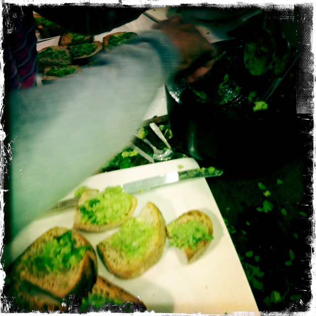 Bruschetta with broad bean and parmesan mash
