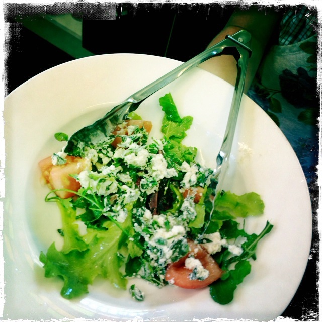 Fresh from the garden: rocket, lettuces, early tomatoes, radishes, limehairy (perennial basil), marjoram, parsley, garlic, lemon