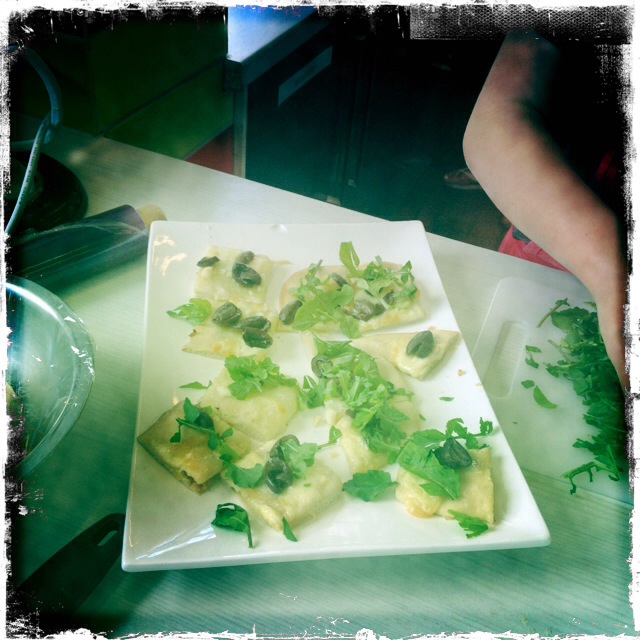 I had a few children telling me that they really didn’t like eggplant at all, so I made a deal that if they tried this pizza and really didn’t like the eggplant they wouldn’t have to eat a whole piece. Do you think there was any left? Nooooo! This pizza is delicious – and if you cook off the thin slices of eggplant first before you compile and bake the pizza, like in the recipe below they simply melt into the cheesy tomato heavenliness…
